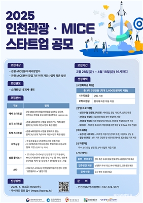 Æ÷½ºÅÍ_ÀÎõ°ü±¤½ºÅ¸Æ®¾÷°ø¸ðÀÎõ½Ã-ÀÎõ°ü±¤°ø»ç, 2025 ÀÎõ °ü±¤‧MICE ½ºÅ¸Æ®¾÷ ¸ðÁý °ø¸ðÀ¯¸Á ½ºÅ¸Æ®¾÷ 15°³»ç ¼±Á¤, »ç¾÷È­ÀÚ±Ý ¹× ¿ª·®°­È­...