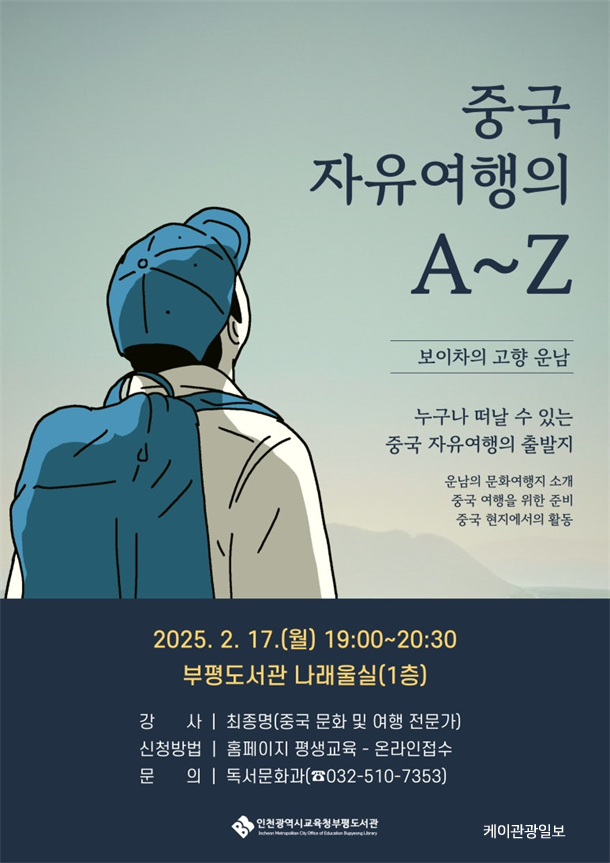 ÀÎõ±¤¿ª½Ã±³À°Ã»ºÎÆòµµ¼­°ü(°üÀå ±èÀ翵)Àº »ç´Ü¹ýÀÎ ºÎÆò±¤Àå°ú ÇÔ²² ¿À´Â 2025³â 2¿ù 17ÀÏ ¿ÀÈÄ 7½Ã, ¡®¿ì¸®¸¶À» ÀÕ´Ù+Àд١¯Àι®ÇÐ °­¿¬ ¡®Áß±¹ ÀÚÀ¯¿©ÇàÀÇ A~Z: º¸ÀÌÂ÷ÀÇ °íÇâ ¿î³²¡¯À» °³ÃÖÇÑ´Ù.