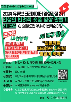 ÀÎõ±¤¿ª½Ã±³À°Ã»Á־ȵµ¼­°ü, 'ÀλýÀÇ ¹Ý·ÁÃ¥ ¼ôÆû ¿µ»ó ¸¸µé±â' ÇÁ·Î±×·¥ ¿î¿µÀÎõ±¤¿ª½Ã±³À°Ã»Á־ȵµ¼­°ü(°üÀå °û¹ÌÇý)Àº ÇϹݱâ À¯Æ©ºê Å©¸®¿¡ÀÌÅÍ ¾ç¼º ÇÁ·Î±×·¥ ...