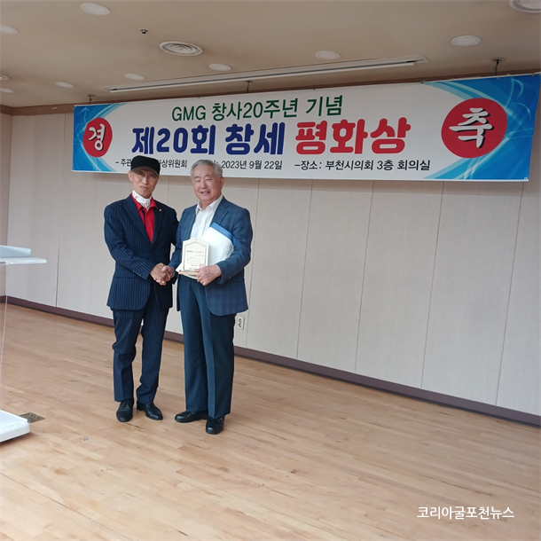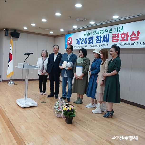 °Ô³Ê½Ã½º¹Ìµð¾î±×·ì(GMG-Genesis Midia Group/±èÇö ¹ßÇàÀÎ °â ȸÀå)Àº â»ç ¸ðÅäÀÎ ¹ÏÀ½ ¼Ò¸Á »ç¶ûÀÇ Á¤½ÅÀ» µ¶ÀÚ ¿©·¯ºÐ°ú ÇÔ²² º¸¶÷°ú Áñ°Å¿òÀ» ³Ð¸® ³ª´©°íÀÚ GMG(°Ç±¹°æÁ¦. e-°Ç±¹°æÁ¦. e-ÄÚ¸®¾Æ±¼Æ÷õ´º½º°Ç±¹³ëÀνŹ®°Ç±¹º¸ÈƽŹ®ÁÖ°üÀ¸·Î â»ç 20ÁÖ³âÀ» ±â³äÇÏ¿© ºÎõ½ÃÀÇȸ(3Ãþ ´ëȸÀǽÇ)¿¡¼­ 2023³â Á¦20ȸ GMGâ¼¼ÆòÈ­´ë»ó ¼ö»óÀÚ ´ë´Ù¼ö¿Í ÃàÇϰ´ÀÌ Âü¼®ÇÑ °¡¿îµ¥ ¼öµµ±Çž´º½º õº´¼± ¹ßÇàÀÎÀÇ »çȸ·Î ±¹¹ÎÀÇ·Ê¿Í ÇÔ²² È­¸ñÇÑ ºÐÀ§±â ¼Ó¿¡¼­ ´Ü¾ÆÇÏ°Ô ¼º·á µÆ´Ù.