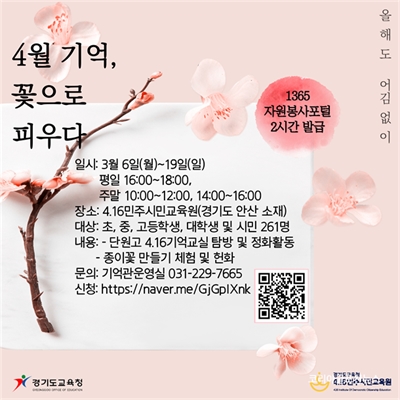 4.16¹ÎÁֽùα³À°¿ø, ¡®4¿ù ±â¾ï, ²ÉÀ¸·Î ÇÇ¿ì´Ù¡¯ ÇÁ·Î±×·¥ Âü°¡ÀÚ ¸ðÁý(Æ÷½ºÅÍ)4.16¹ÎÁֽùα³À°¿ø,¡®4¿ù ±â¾ï, ²ÉÀ¸·Î ÇÇ¿ì´Ù¡¯ ÇÁ·Î±×·¥ Âü°¡ÀÚ ¸ðÁý3...